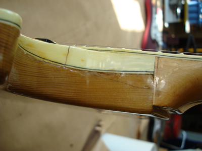 Then there are some "larger catastrophies". A cracked soundboard, a bridge that has come loose, a broken neck can all be treated. I've seen even some totalled guitars, but so far, I've been able to fix everything.