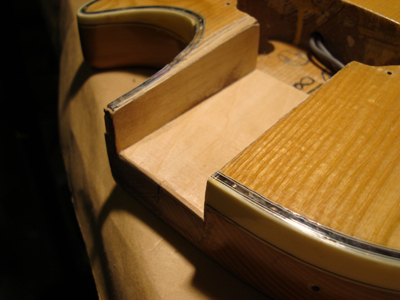 I needed another breather after inspecting the guitar. What a waste, I thought. Had it been used to dig a ditch, to chop wood or what. At some point the neck had been glued with epoxy together with various spare wood. As you might guess, all the measurements were off and the neck pointed to a completely wrong cardinal direction. Separating the neck and building a new neck pocket took some time. But easy does it....