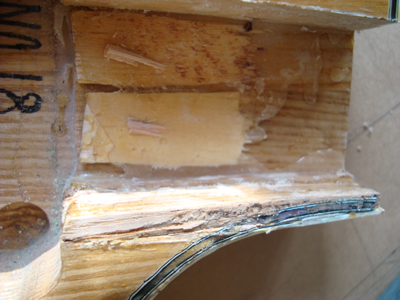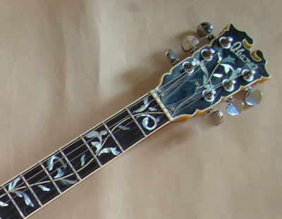 Happihyppelyn paikka oli myös, kun tutkailin soitinta. Uskomaton tärviö, ajattelin. Oliko sillä lapioitu ojaa, hakattu halkoja vai mitä. Kaula oli liimattu epoksilla jossain vaiheessa takaisin uskomattoman puusälän kera. Arvatenkaan mikään mitta tai kaulakulma mihinkään ilmansuuntaan ei ollut kohdallaan. Kaulan irroitus ja uuden kaulataskun rakentaminen oli työläs homma. Yhtä sun toista on tullut vastaan. Mutta hiljaa hyvä tulee… Se miten kyseinen laite on päätynyt Suomen kamaralle jäänee arvoitukseksi.