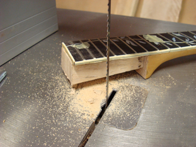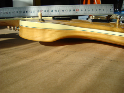 Tekevälle sattuu. Pieni lipsahdus ja lapanen lähti irti, eli kaula poikki. No, samalla sai mikit kyytiä. Käytiin sitten laite läpi. Lapaan pari jippoa, injektiolla liimaa ja jigiin puristukseen. Korjatun osion hionta, uusi maali ja lakka. Nauhatyöt. Satula kuosiin. Puhdistus ja kiillotus. Mikit vaihdettiin Seymour Duncanin 59 Vintage Blues settiin. Ja kyllä soi! Nyt on Les Paulilla kysyntää Torbjörnin studiolla.